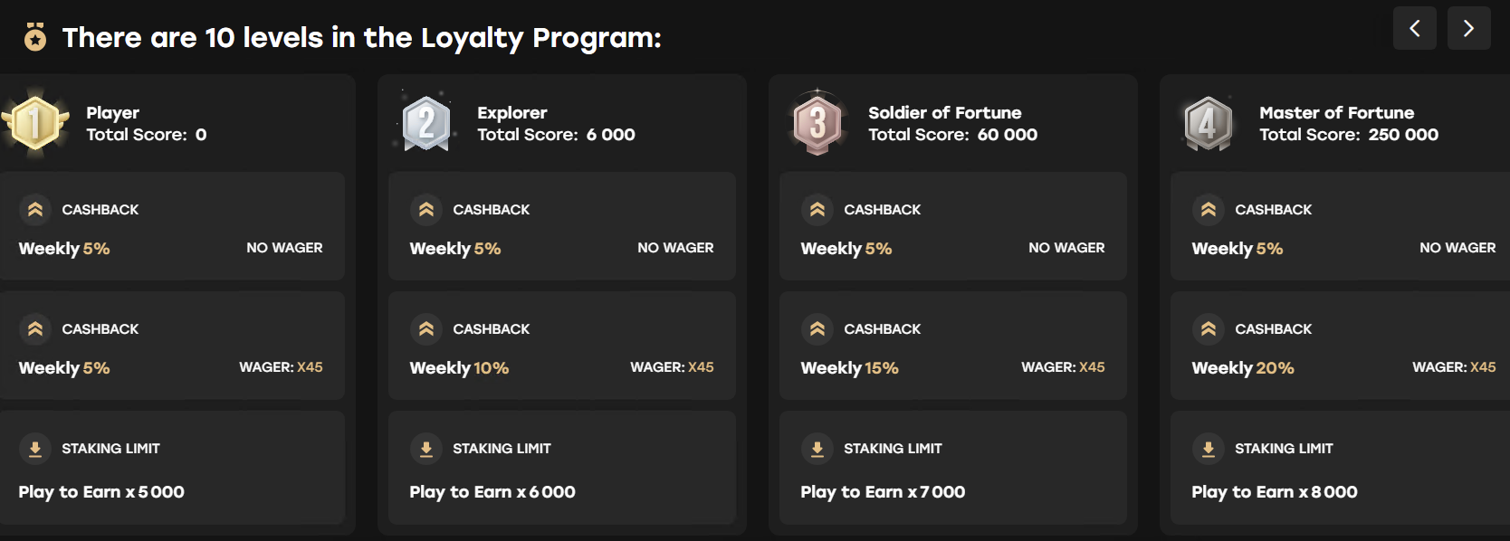 By continuously collecting loyalty points, you can move through the levels faster and reach increasingly valuable bonuses. The higher the level you reach, the more you can win and the more advantages you can access.